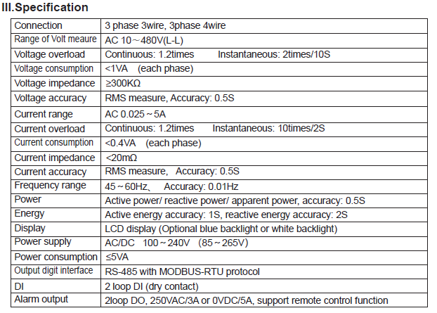 Dải đo điện áp: AC 10~480V(L-L)